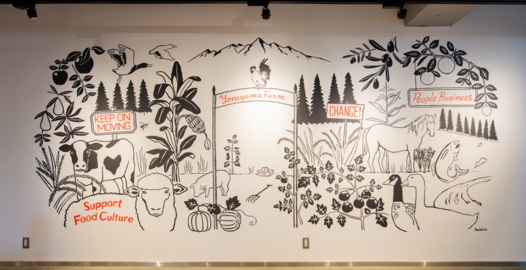 豊かな食生活を支えていく私たちの仕事をビジョンとして描くために東京支店の壁画でも表現しています。